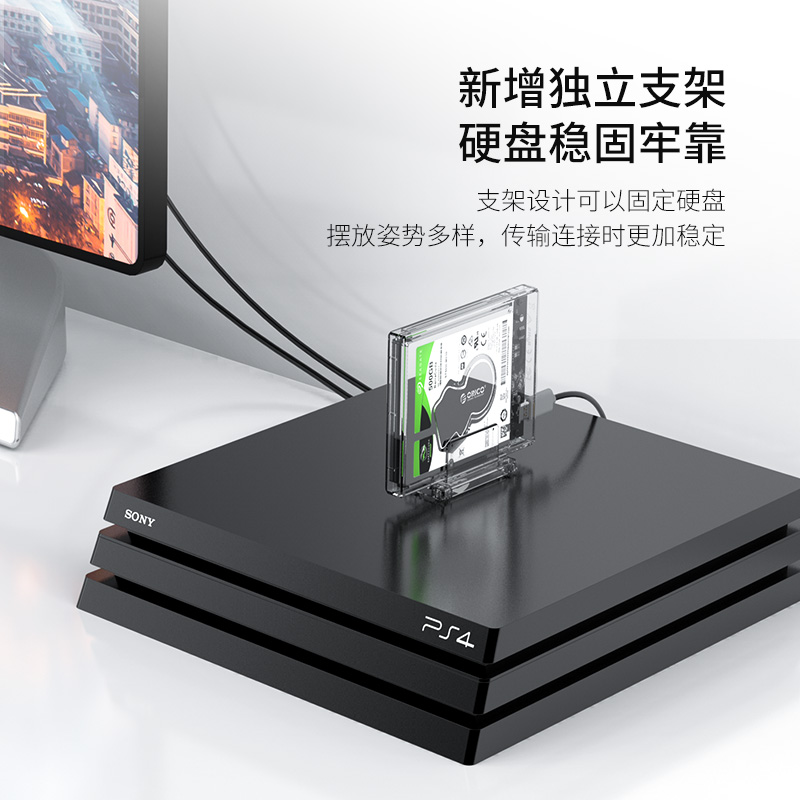 PC透明材质2.5寸SATA Type-C移动硬盘盒,机身全透视效果