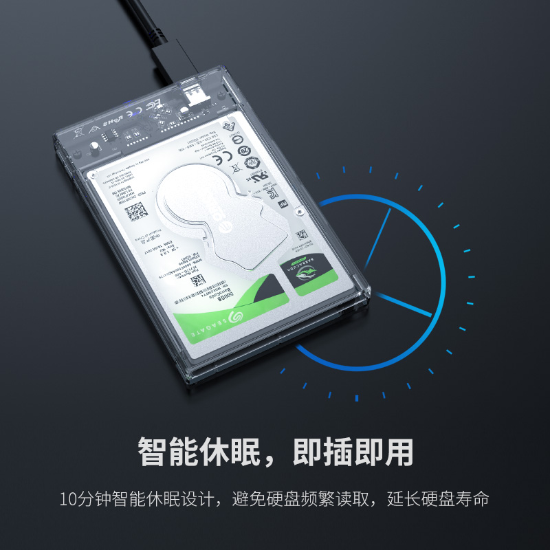 2.5寸Type-C移动透明硬盘盒,USB3.1 Type-C接口