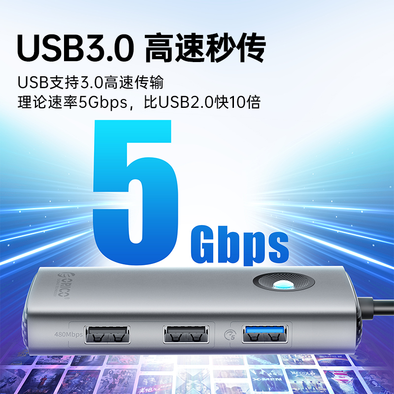 USB-A*3(5Gbps)USB-C*1(5Gbps)PD100W*1HDMI*1(4K@30Hz)