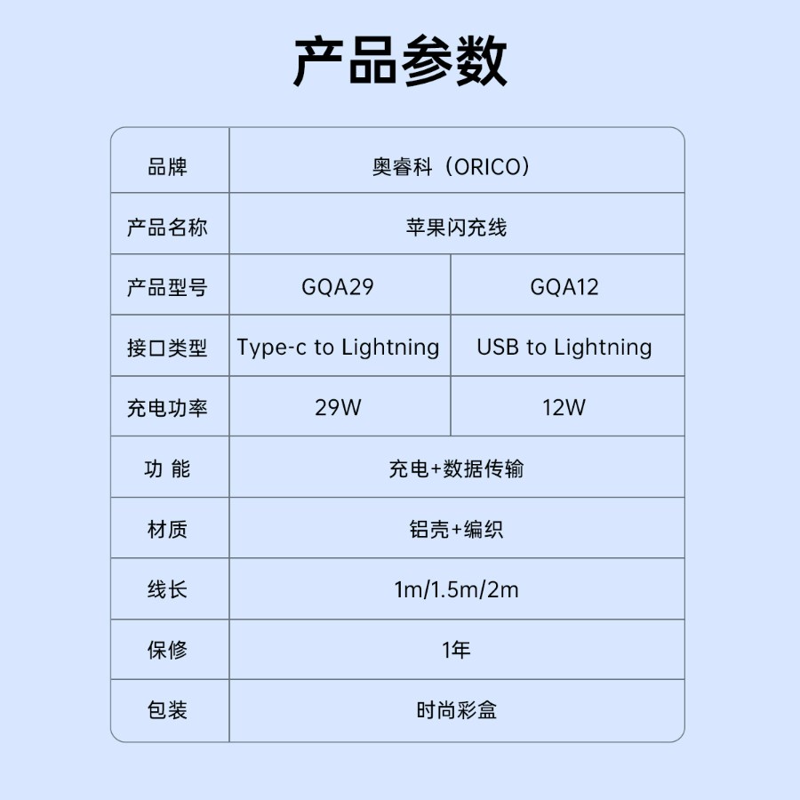 29W USB-A to Lighting 苹果充电线