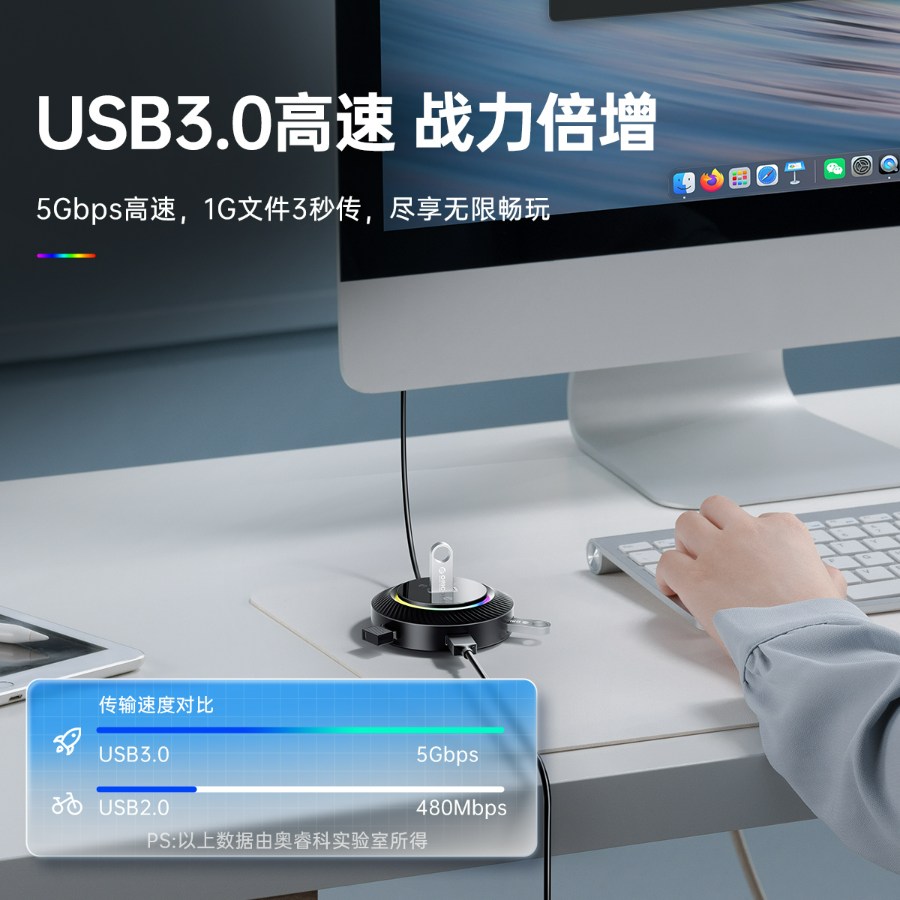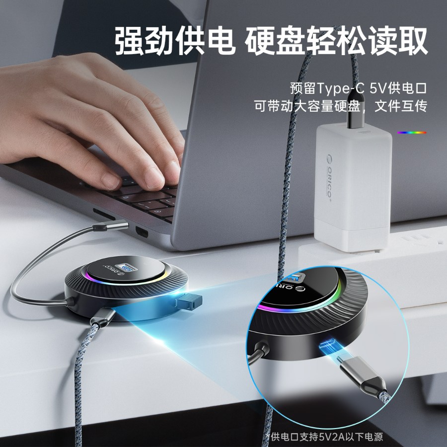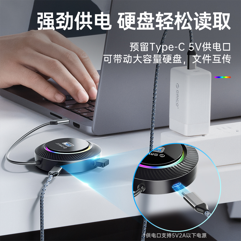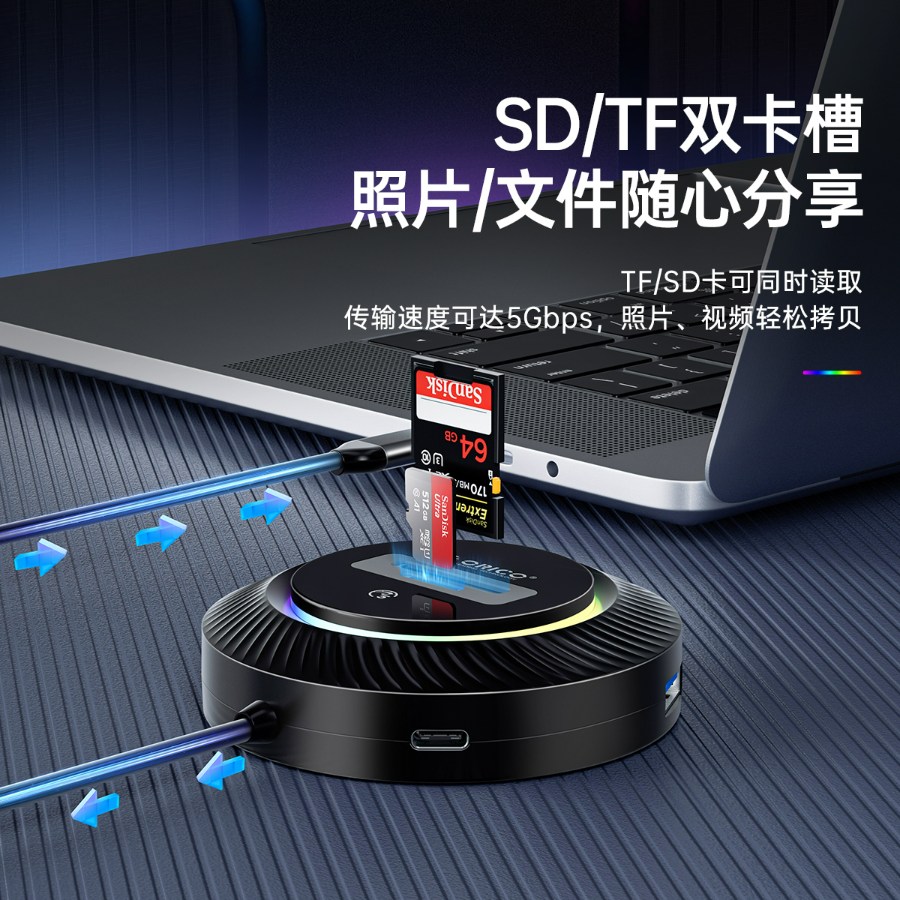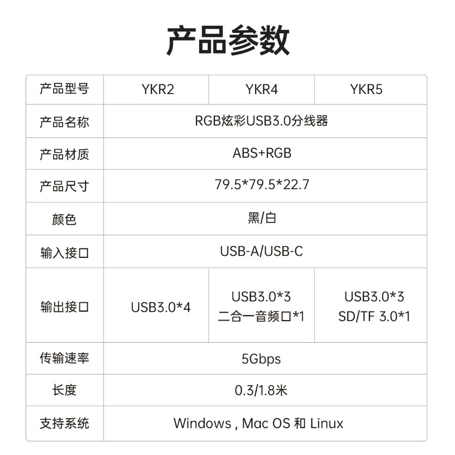 USB-A 3.0(5Gbps)*3, SD/TF3.0 *1 供电:Type-C 5V/2A 10W Max Power Port