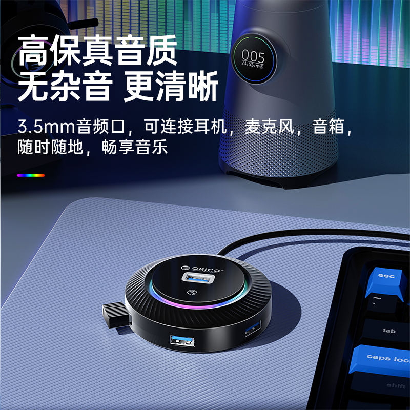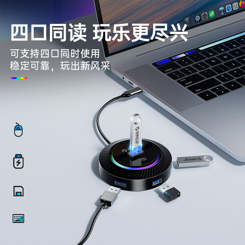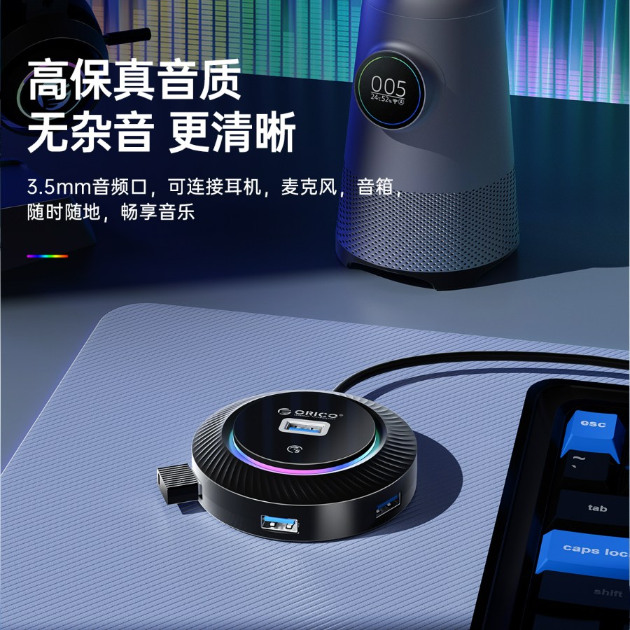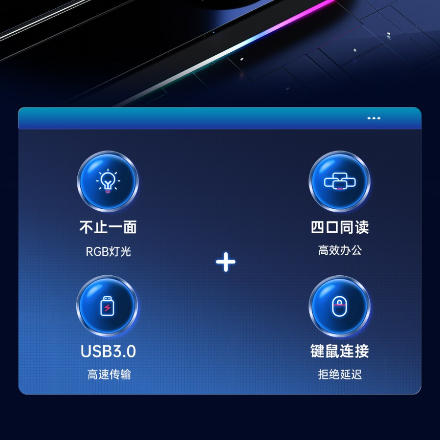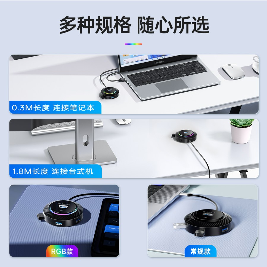 USB-A 3.0(5Gbps)*3, SD/TF3.0 *1 供电:Type-C 5V/2A 10W Max Power Port