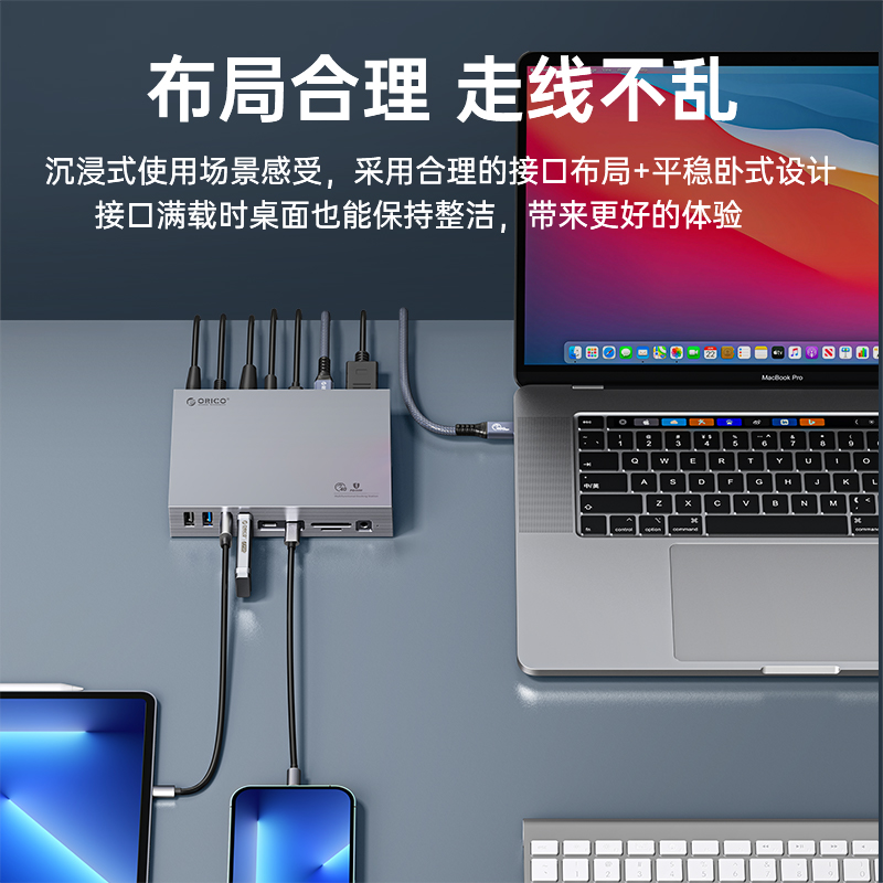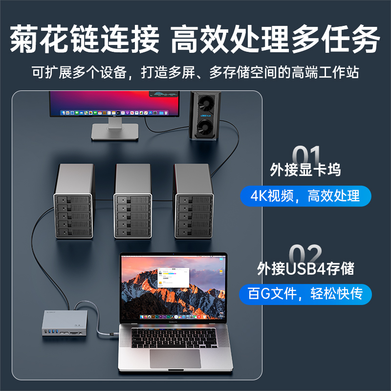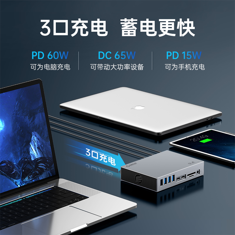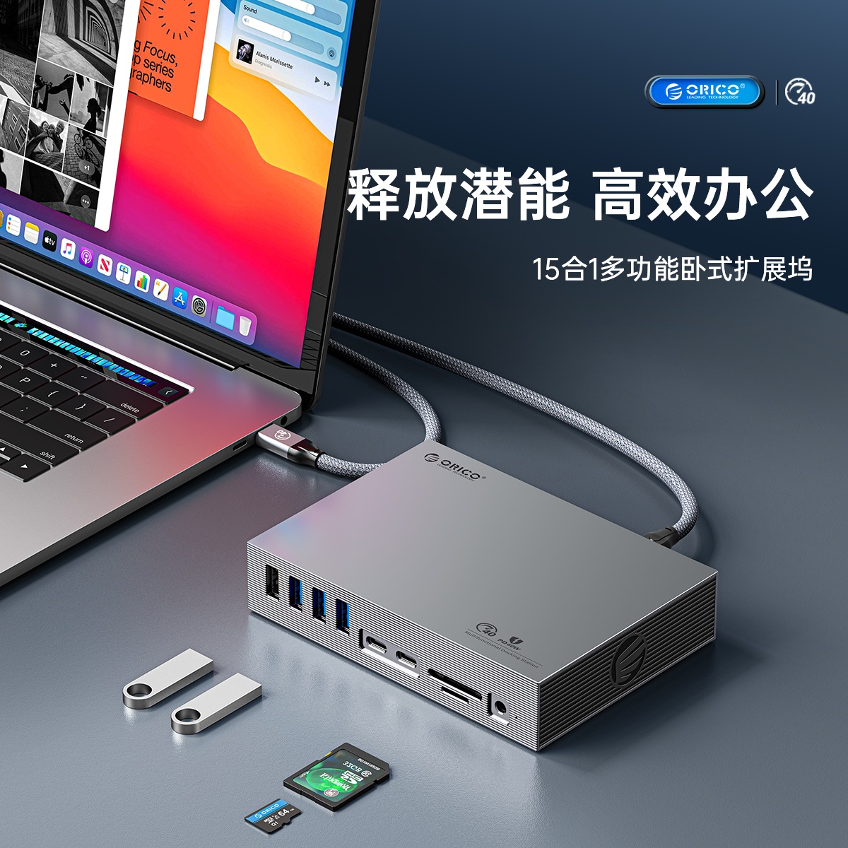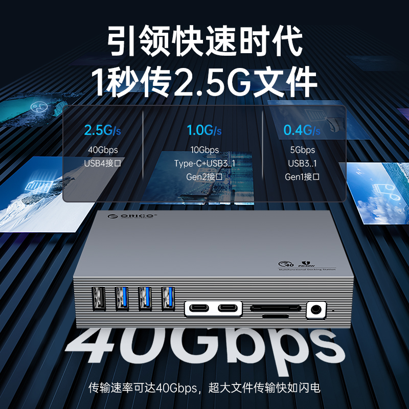 USB-C 雷速40Gbpsx1、USB-C(10Gbps)x2、USB-A(10Gbps)x1、USB-A(5Gbps)x2、USB-A2.0x2、RJ45千兆网口x1、3.0SD/TF读卡器(同读)x2、3.5mm Audio/Micx1、S/PDIFx1、DP 8K@30Hz*1