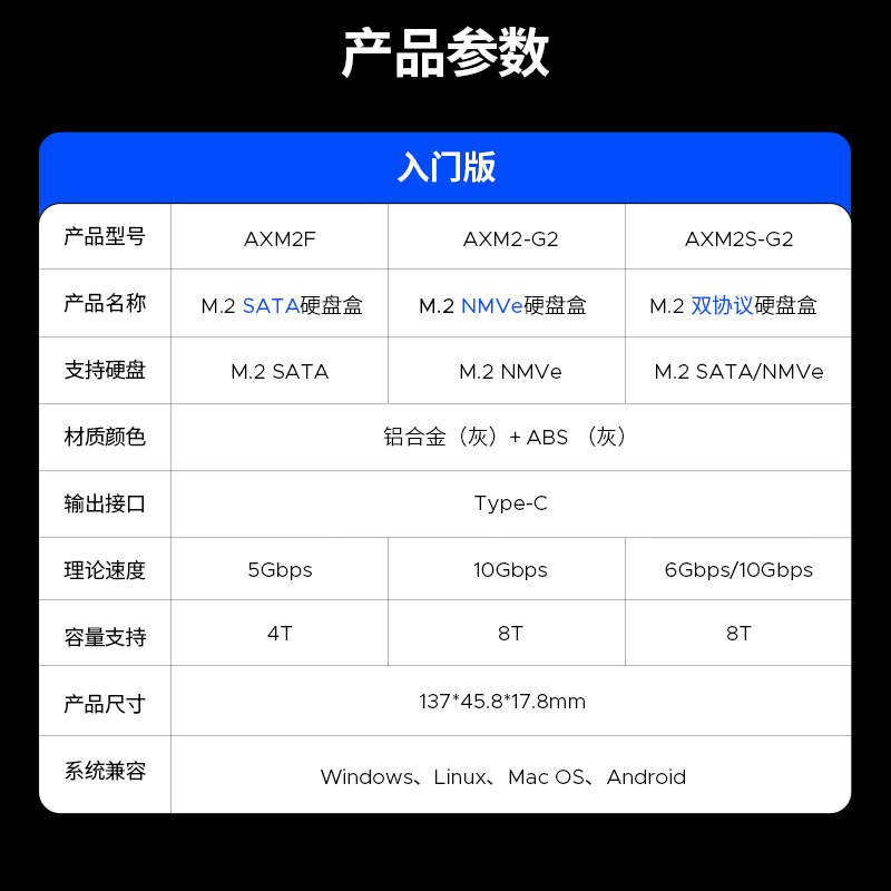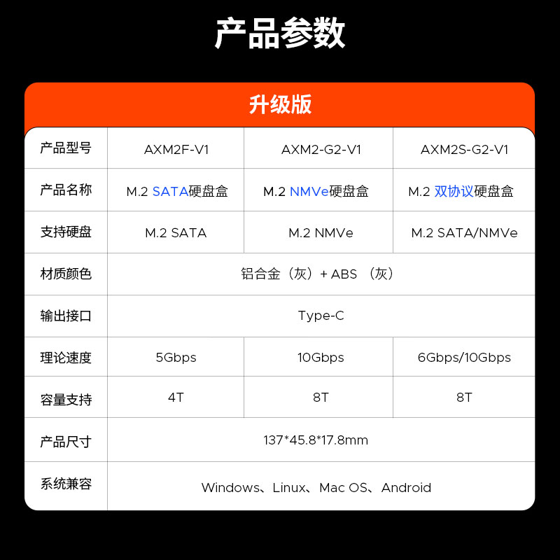 铝合金 M.2 NGFF硬盘盒(二合一线)