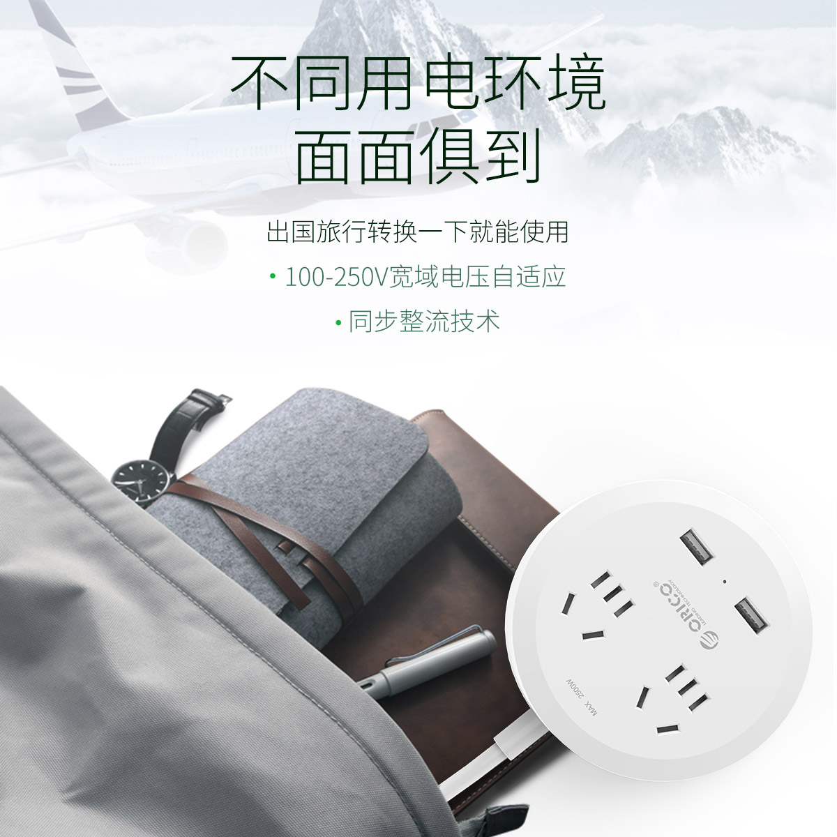 小巧便携的ORICO插一板适合旅行携带,当然在书桌,床头,办公桌使用 不同环境的电压均能自适应,还可以支持高功率,快速USB充电,大间距窄孔,经常出差的朋友可以考虑下