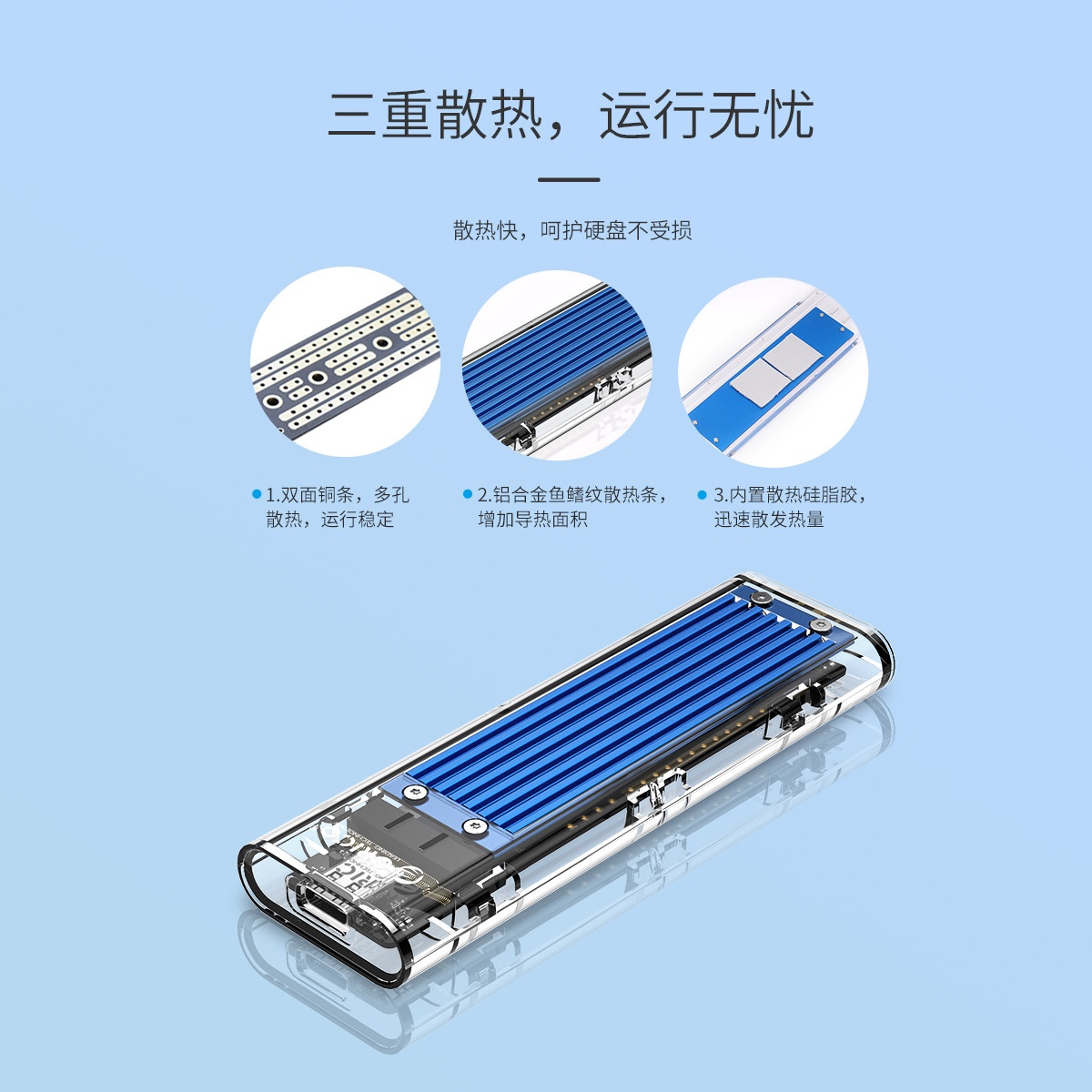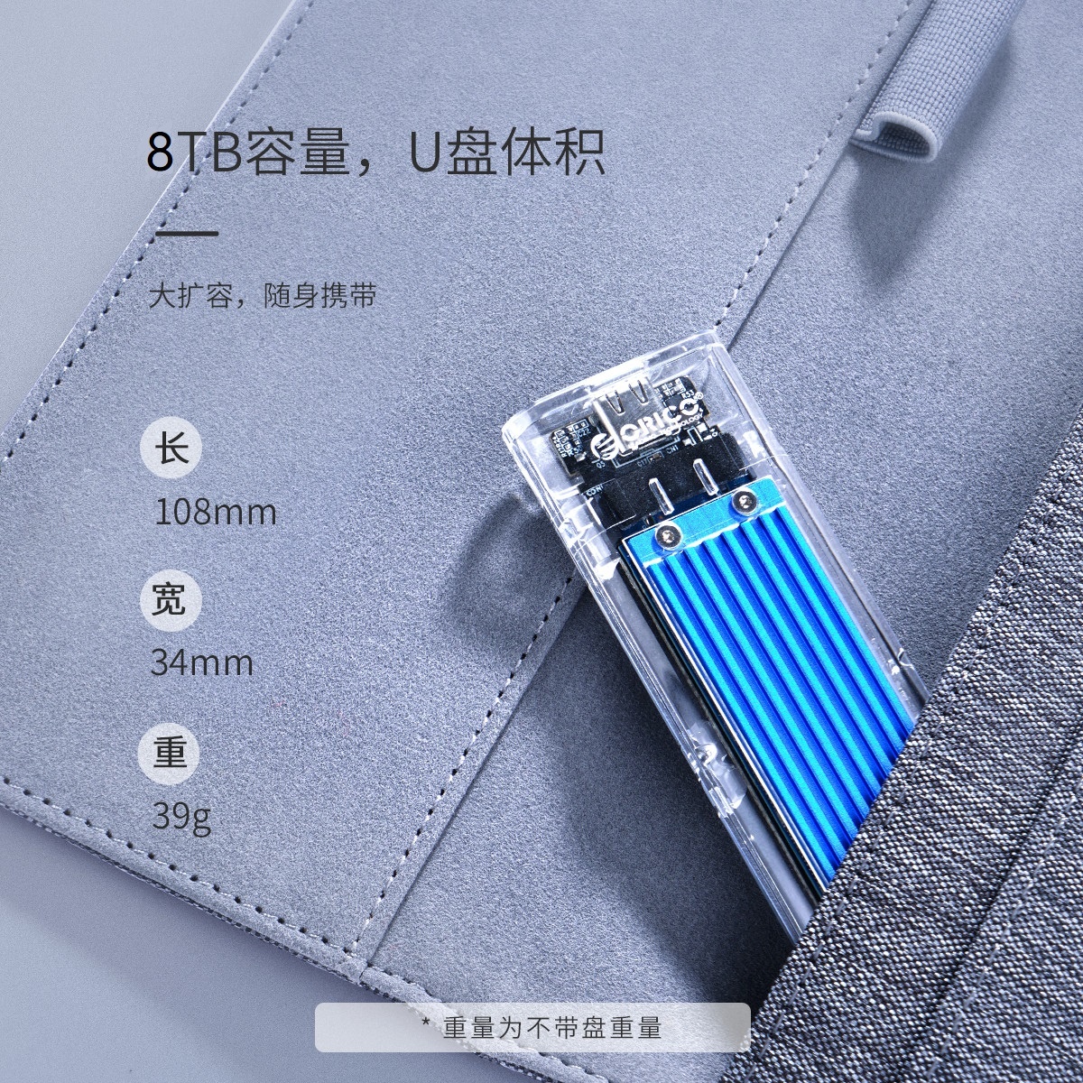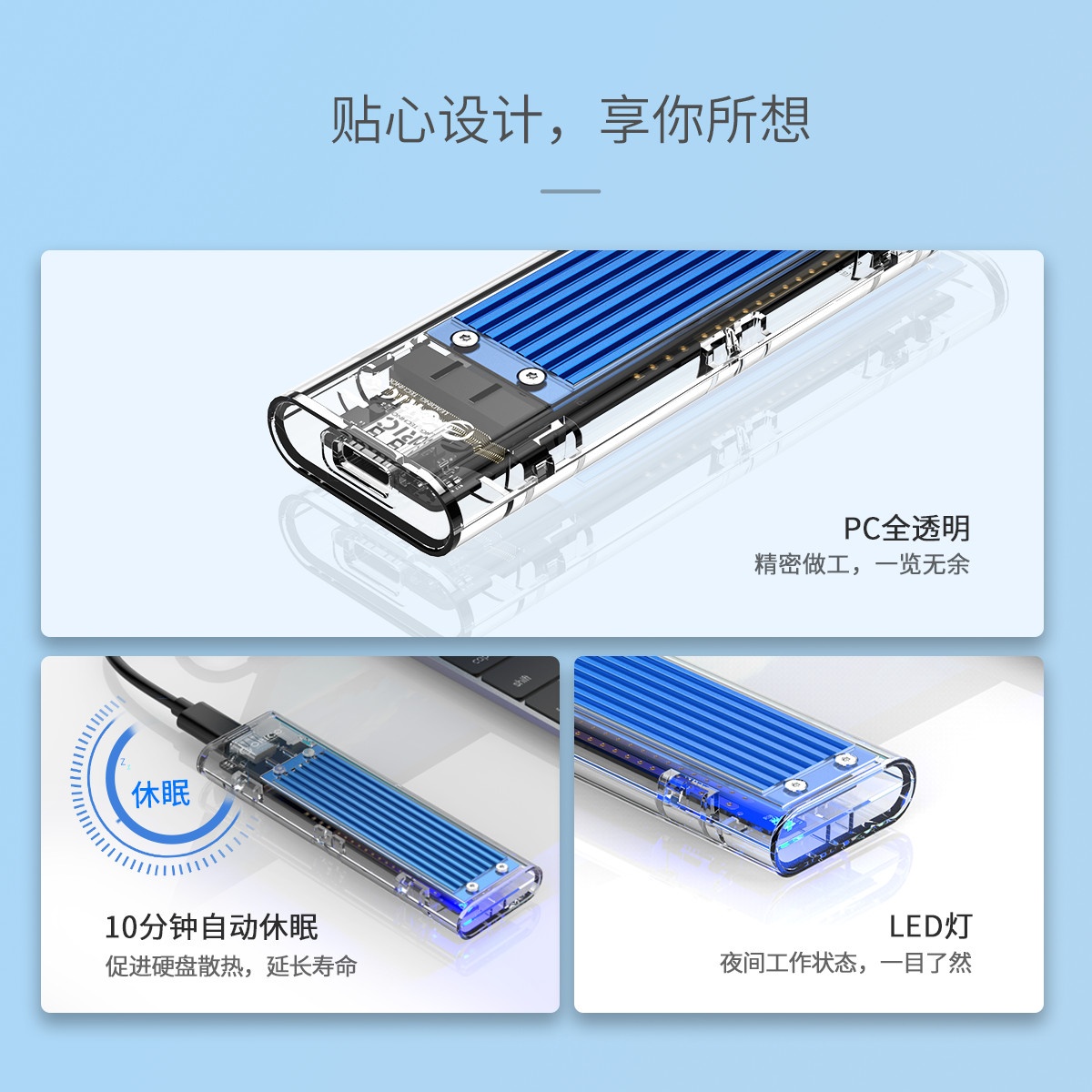 NVMEM.2转Type-C,10Gbps高速传输,TRIM+UASP双加速协议,全透明+多彩铝合金外观设计,8TB大扩容