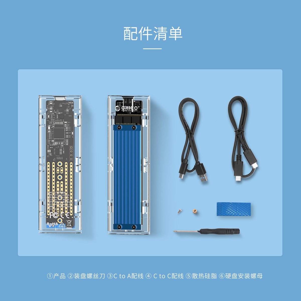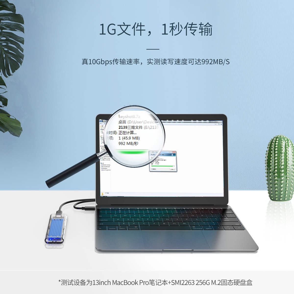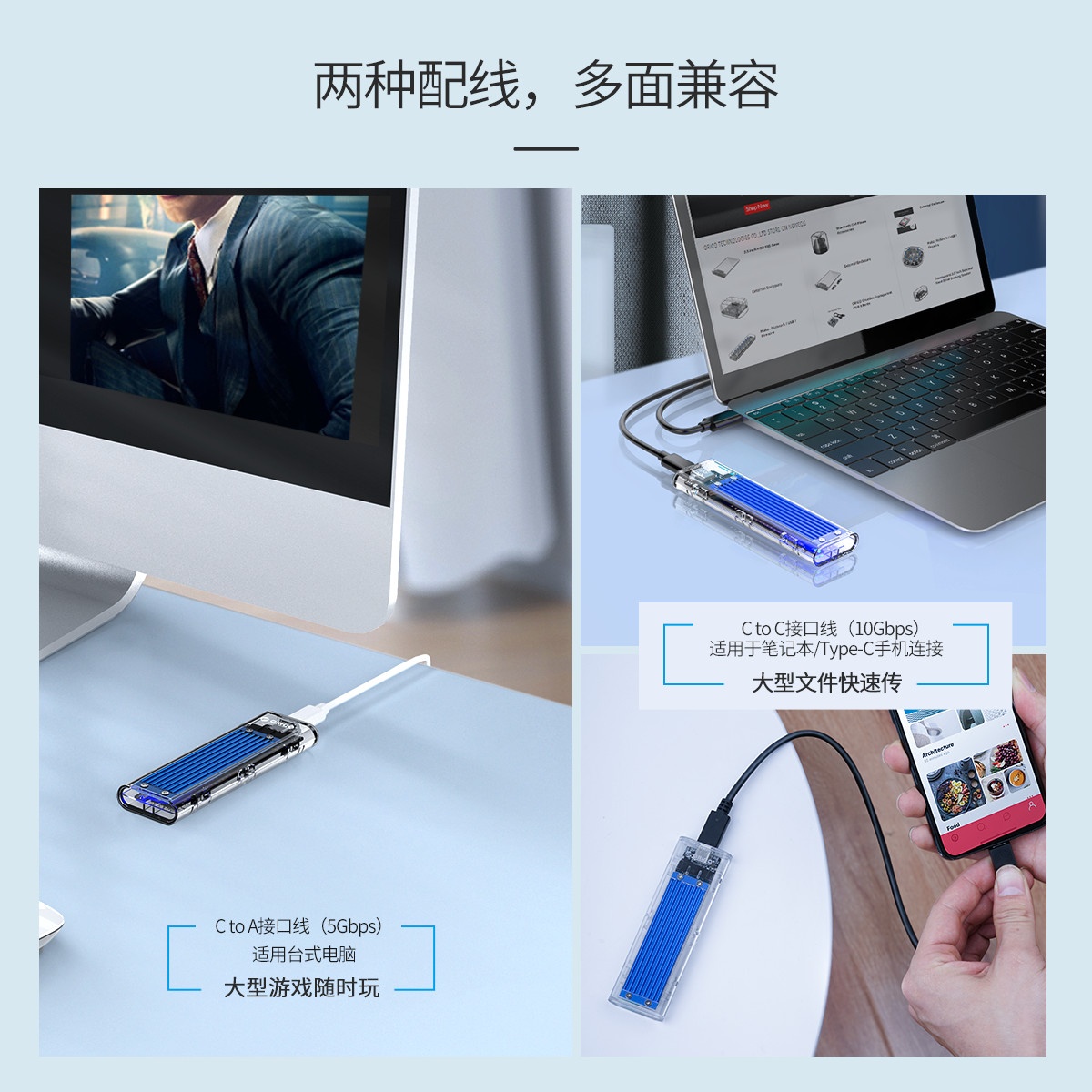 NVMEM.2转Type-C,10Gbps高速传输,TRIM+UASP双加速协议,全透明+多彩铝合金外观设计,8TB大扩容