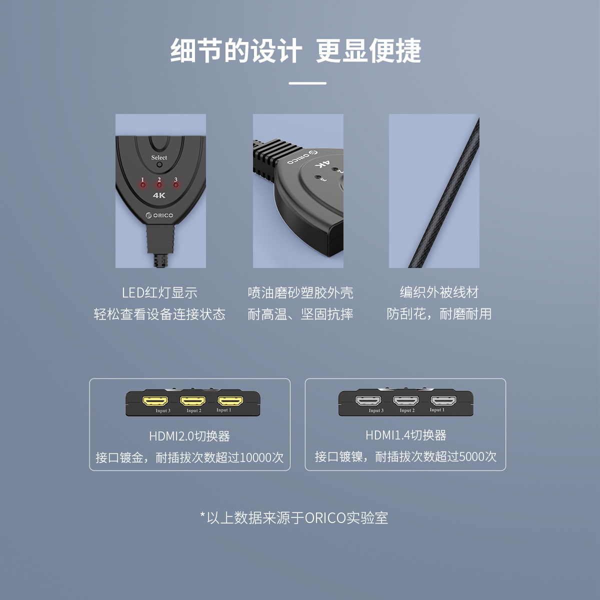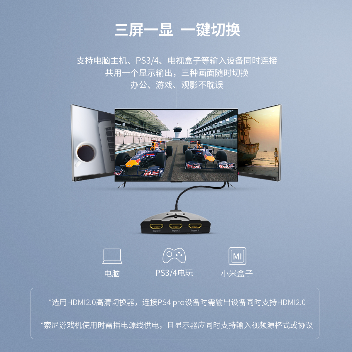 三进一出4个HDMI接口,即插即用,一键切换,画面清晰