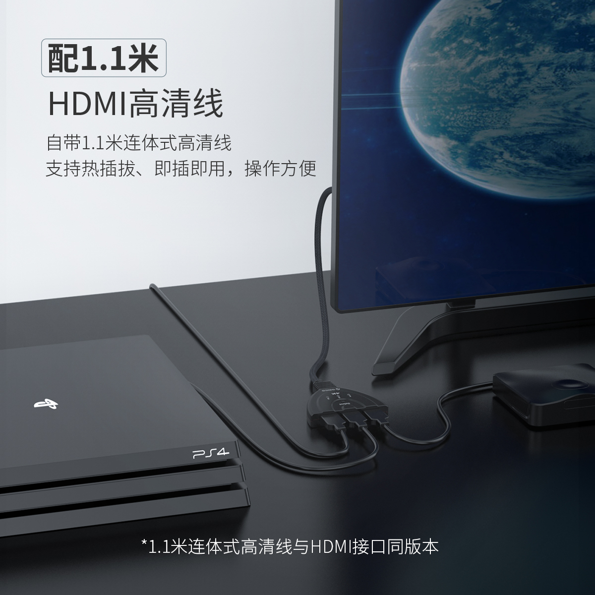 1.1米连体式高清线,支持热插拔,即插即用,高清4K,支持3D立体视效